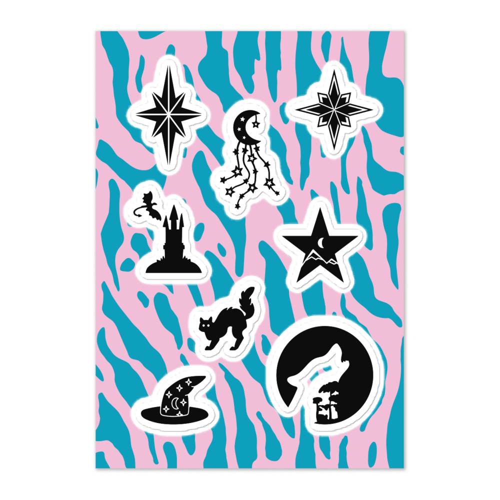 Pegatinas tipo Halloween para mis libretas, me encanta el lobo aullando.